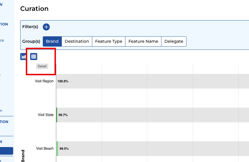 When you open the Curator module, click the "Detail" view icon (which looks like a grid or spreadsheet) in the upper left corner to transition away from the initial bar graphs.