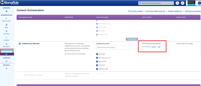 Manual Orchestration: How to Download Your FAQ Package from the Bonafide Platform for Sub-Directory Placement