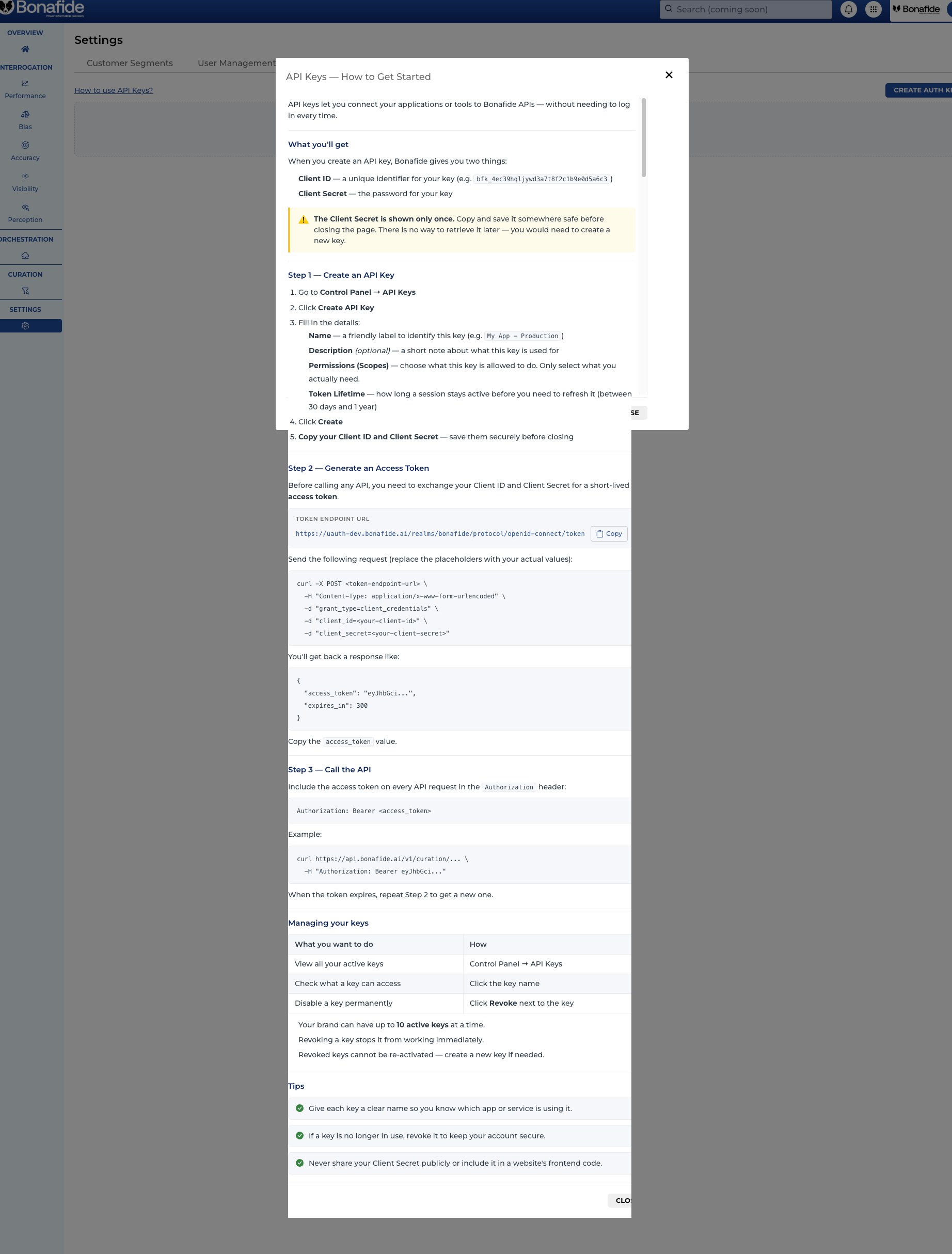 How to Use and Manage Bonafide API Keys